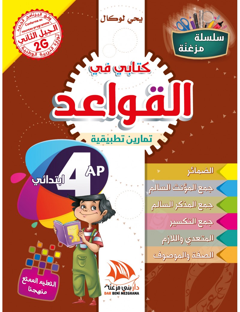 تَجِدُونَ فِي هَذَا الكِتَاب تمارين تطبيقية في قواعد اللُّغَةِ العَرَبِيَّةِ لِقِسْمِ السَّنَةِ الرَّابٍعَة ابْتِدَائِي طبقا لبرنامج الجيل الثاني.